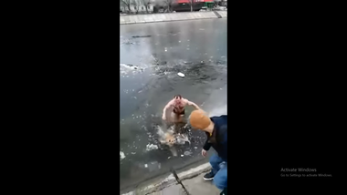 ВИДЕО: Жител на Астрахан влезе в ледени води, за да спаси давещо се куче
